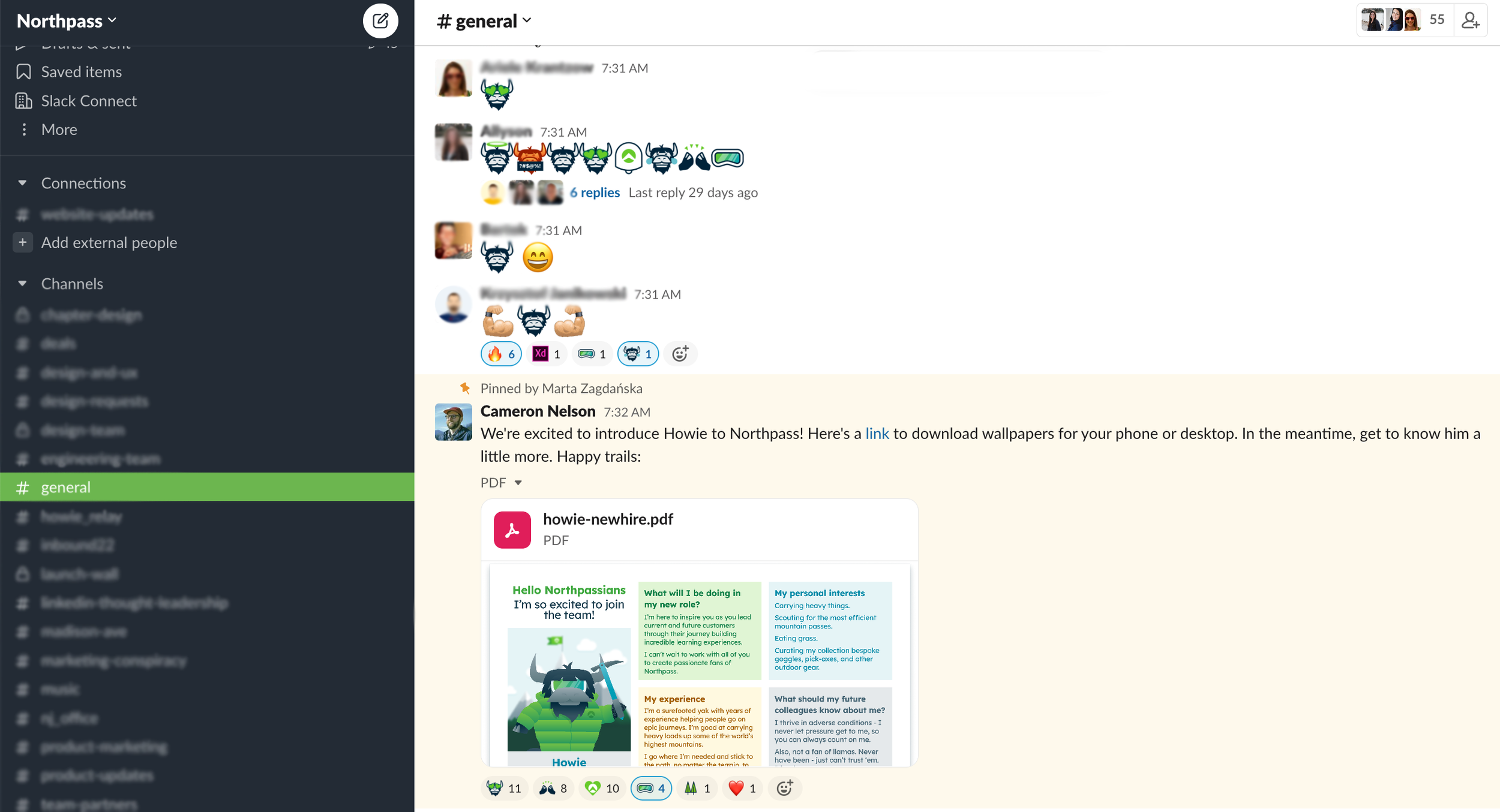 Custom Howie emojis were brought into our Slack to help interweave some fun into our day-to-day. Adding levity to the work week and creating delight.